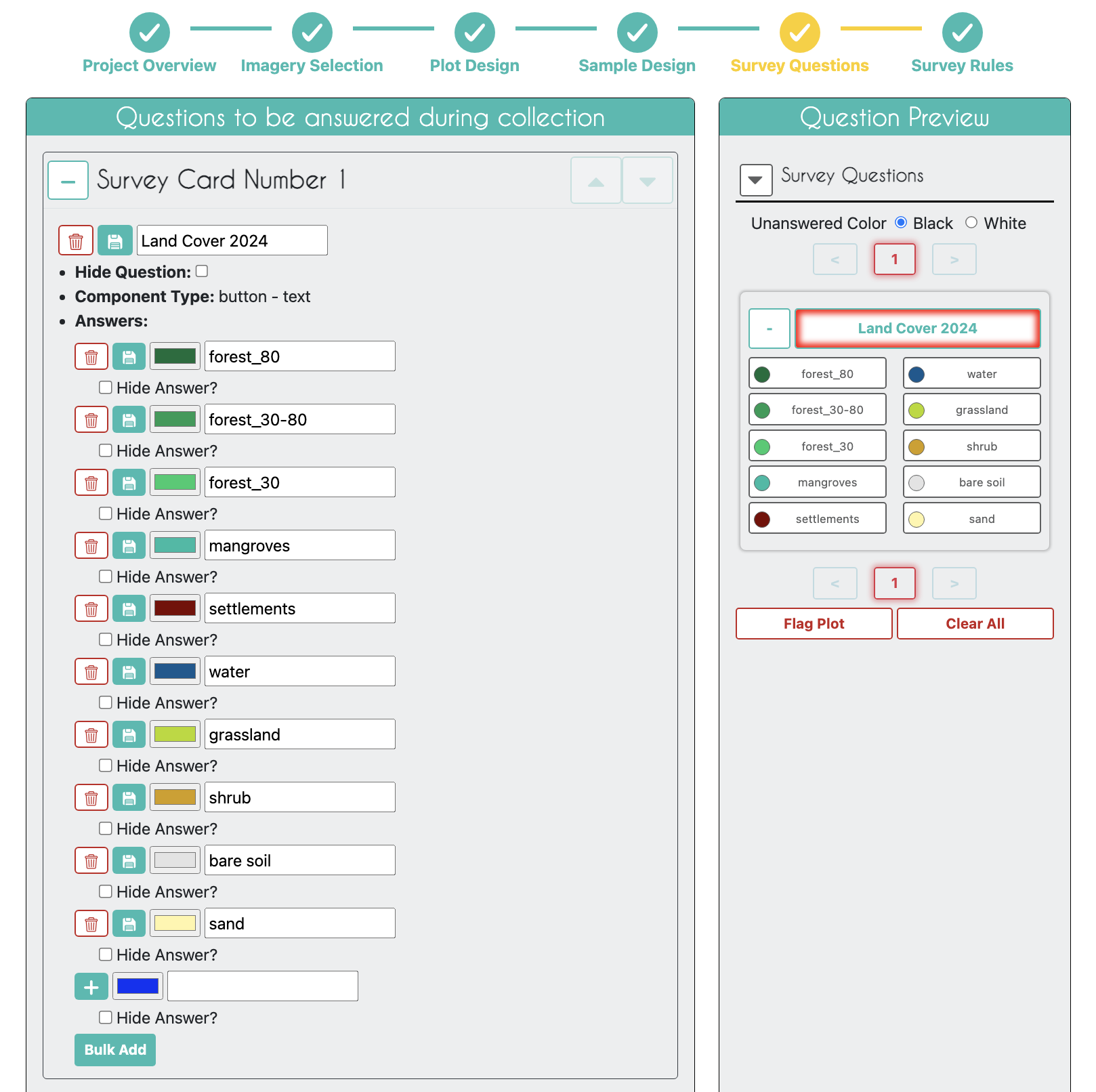 - Your only necessary survey question should ask about the land cover in 2024, with all the land cover types you want.